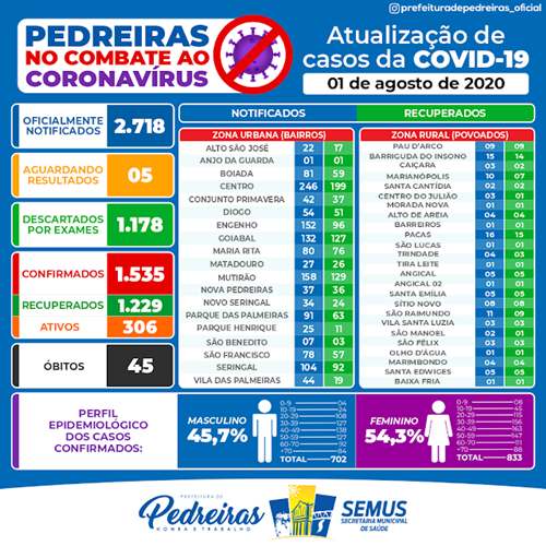 Neste sábado (1º), o país registrou 1.048 mortes pela Covid-19 e 42.578 casos da doença, segundo levantamento feito pela Folha em parceria com UOL, O Estado de S. Paulo, Extra, O Globo e G1. O país somava 93.616 mortes e 2.708.876 de pessoas infectadas pelo novo coronavírus até sábado.
