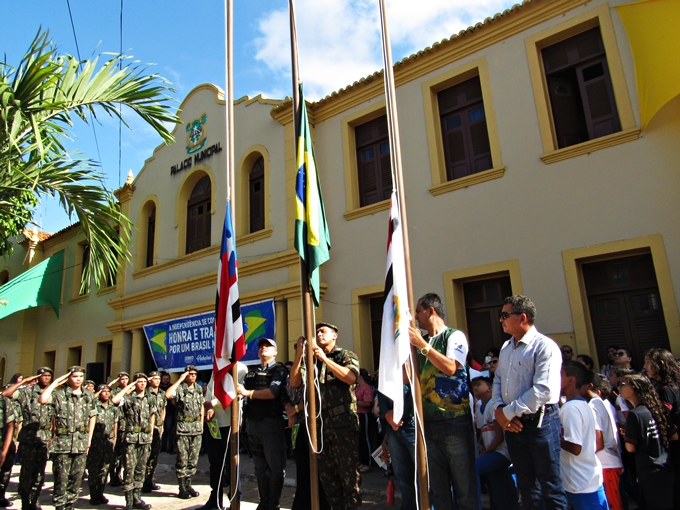 A programação do dia da Independência do Brasil, em Pedreiras, começou com o Hasteamento das Bandeiras do Brasil (Major Ricardo), do Maranhão (Subtenente Sérgio) e de Pedreiras (Prefeito Antônio França), durante solenidade realizada em frente ao Palácio Municipal, antigo prédio da prefeitura.