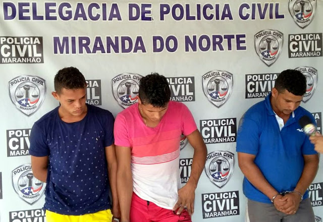 Três homens foram presos na região de Miranda do Norte, durante operação conjunta desencadeada ontem (9). Jadiel Garcês Cantanhede, vulgo MARANHÃO, Erivaldo Santos Carvalho e Tarcísio dos Santos, são suspeitos de envolvimento em um assalto a uma Van na última quarta-feira (8), no povoado Barbatana na entrada do Balneário, há cerca de 01 km de Miranda. Eles também são suspeitos de autoria de outro assalto a Van ocorrido na semana passada na BR 135, localidade Pindoval. Um dos homens foi reconhecido como sendo o autor de um roubo a mão armada onde um cordão de ouro foi tomado de assalto no centro de Miranda do Norte.