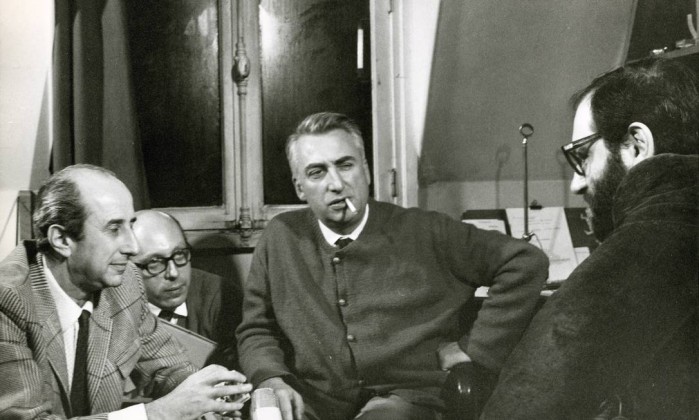 Da direita para a esquerda, Umberto Eco, Giulio Macchi e Roland Barthes Agência O Globo |