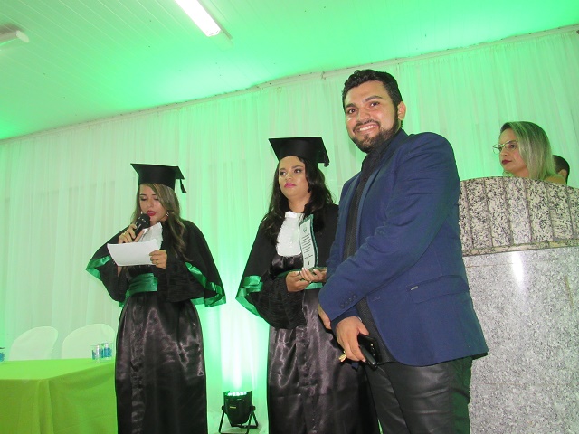 Na mesa composta por educadores, a ausência da Diretora-presidente professora Aldenora Veloso, o Diretor da instituição, Habniesley Pereira de Carvalho, foi quem presidiu a formatura.