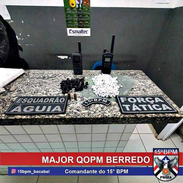 A guarnição da radiopatrulha realizou a condução e, na Delegacia Regional de Polícia Civil da cidade de Bacabal, foi constatado que o conduzido possuía um mandado de prisão em aberto, expedido pela comarca do Município de Rosário -MA. O mesmo ainda é suspeito de pertencer a uma facção criminosa.