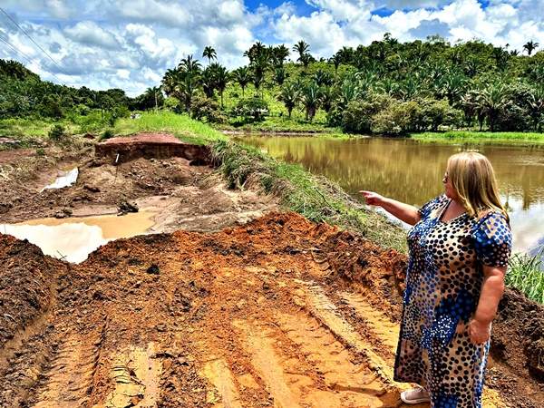 Prefeita Dirce Prazeres durante inspeção da estrada do Vale Paraíso/Foto: ASCOM de Lima Campos