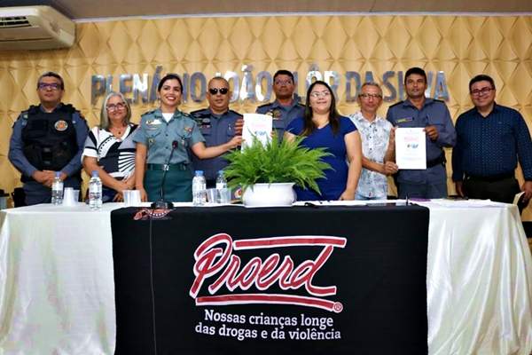 Na tarde desta terça (23), Prefeitura de Lima Campos e Polícia Militar assinaram o protocolo de intenções do PROGRAMA EDUCACIONAL DE RESISTÊNCIA ÀS DROGAS E À VIOLÊNCIA (PROERD), em evento no prédio da Câmara Municipal de Vereadores, com as presenças de autoridades militares, secretários do governo municipal, Pr. Valdenir, Prof. Maria Cilene, pais, responsáveis, alunos e diversas crianças.