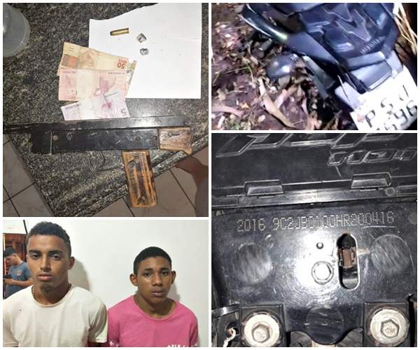 Momento antes da prisão, que aconteceu em Trizidela do Vale, a dupla é suspeita de tentativa de assalto que foi frustada pela vítima, em Pedreiras, que efetou disparo de arma de fogo, os bandidos correram.