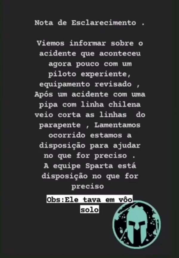 Em nota feita pelo Instagram, a Escola de paramotor Spartavôo, responsável pelo paramotor usado por Sandro, informou que o acidente não foi em razão dos equipamentos, já que estes haviam sido revisados há pouco tempo.