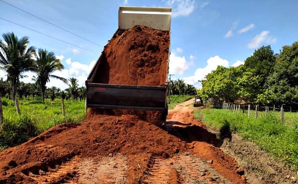 Em alguns pontos foram feitos serviços de terraplanagem em trechos importantes para o transporte e o escoamento da produção agrícola, bem como a passagem dos veículos.
