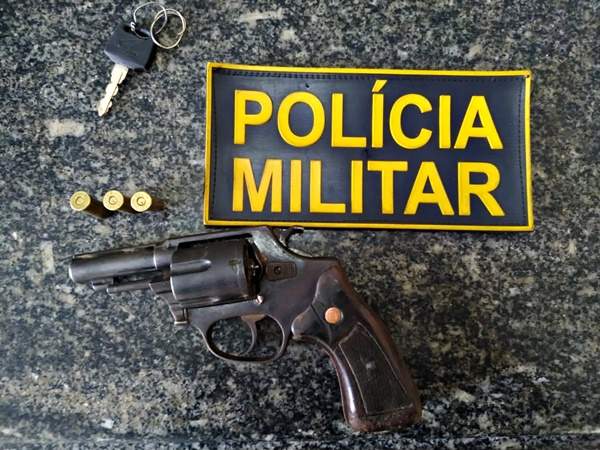 Com o suspeito, a Polícia Militar apreendeu ainda um revólver calibre 38, com numeração ilegível, com 03 munições e