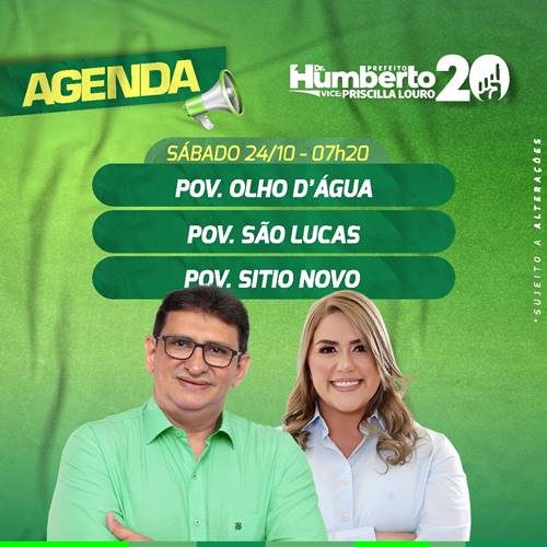 Sábado, veja a agenda e siga seu candidato a Prefeito de Pedreiras.