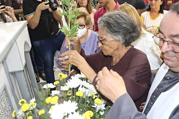A devota Cacilda Abreu, como sempre, é quem oferta o primeiro arranjo de flores e esse ano não foi diferente.