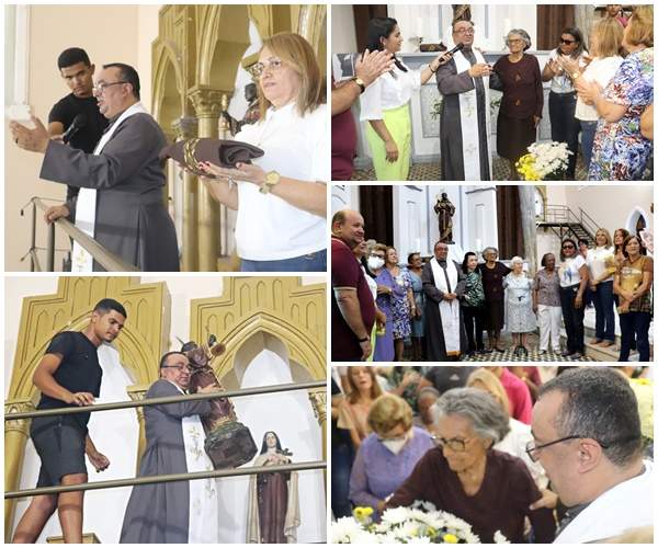 Dezenas de fiéis acompanharam hoje (17) a solenidade de Descida da Imagem de São Benedito, Padroeiro de Pedreiras. O ato católico foi realizado no Santuário, com as presenças da prefeita de Pedreiras, Vanessa Maia, do primeiro cavalheiro, Fred Maia, da vereadora Valdete Cruz, que representou o legislativo, e católicos de vários setores.