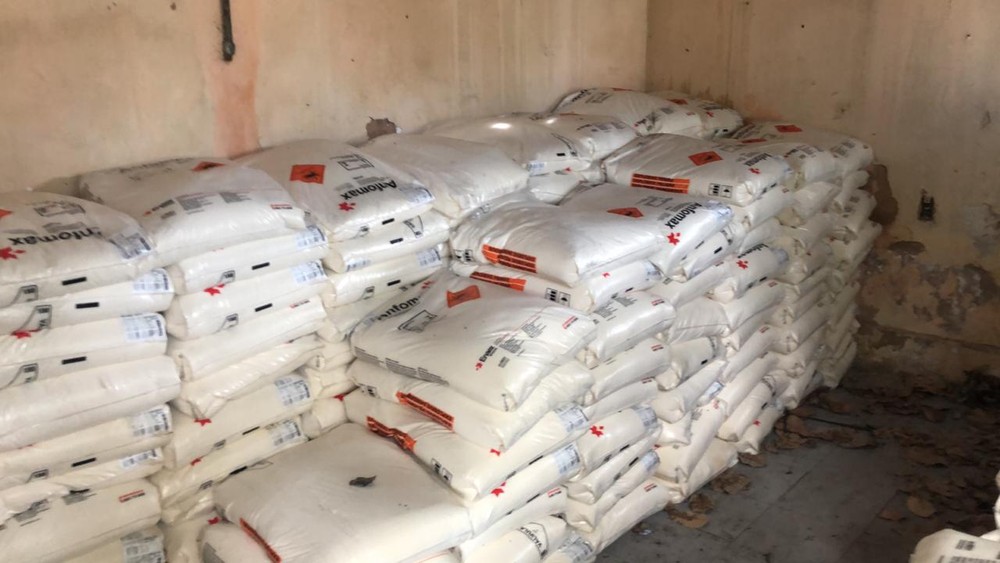 A estimativa inicial é de que o depósito dos criminosos contém cerca de cinco toneladas de material utilizado para fazer dinamites, de acordo com a Secretaria da Segurança Pública. O material estava contida em embalagens com o símbolo de “explosivo” e o alerta de “perigo” em três idiomas. Um caminhão do Exército recolheu a carga.