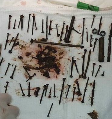 Na operação, exatos 152 objetos de metal foram retirados. Entre eles, parafusos, pregos e até mesmo uma dobradiça de porta. “Nenhum dos familiares soube informar há quanto tempo esses objetos estão dentro dela”, explicou em entrevista ao jornal britânico Daily Mail um dos funcionários do hospital. A mulher se recupera bem e deve receber alta em breve.