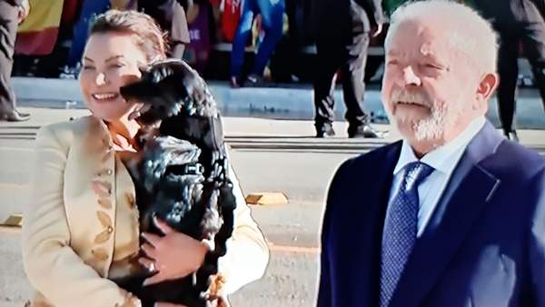 Lula subiu a rampa do Planalto acompanhando da primeira-dama, Janja da Silva, do vice-presidente Geraldo Alckmin, de Lu Alckmin, da cachorrinha Resistência, adotada por Lula e Janja, e por cidadãos convidados a representar a diversidade da população.