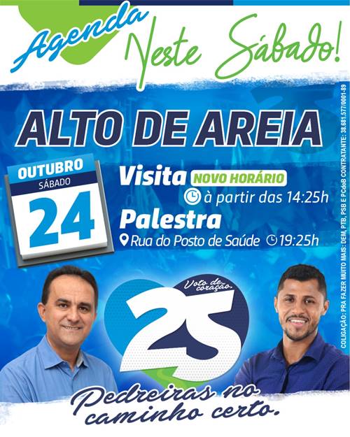 Pedreiras: Agenda dos Candidatos a Prefeito 24/10 Sandro Vagner 5 anos atrás Sábado, veja a agenda e siga seu candidato a Prefeito de Pedreiras. Vanessa Maia – SOLIDARIEDADE Dr. Humberto – PSC Antônio França – DEM Pastor Odaias – PODEMOS Compartilhe isso:Print