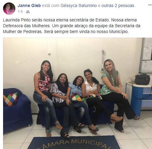 Inúmeras mensagens de apoio e de agradecimentos em alusão à ex-secretária foram postadas nas redes sociais, e, por esse mesmo meio de comunicação, Laurinda Pinto relacionou ações que por ela foram desenvolvidas durante sua gestão como secretária de estado da mulher.