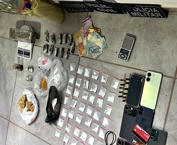 Nos imóveis alvos da operação, os policiais apreenderam uma grande quantidade de entorpecentes, incluindo maconha, crack e cocaína, além de balanças de precisão, munições e aparelhos celulares utilizados, segundo a polícia, na prática criminosa.